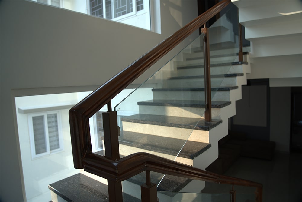 This contemporary luxury residence redefines modern living through meticulous craftsmanship and cutting-edge design. The home features smart switches for automated lighting control, Kohler sanitary fittings for a premium bathroom experience, and thermostatic controls to ensure perfect bathing temperatures. Every interior space is thoughtfully illuminated with custom profiling lights that highlight architectural details, while granite-clad window frames and parapet walls add enduring elegance. The home prioritizes security and ventilation with 3-channel UPVC windows featuring lockable mesh partitions. A stunning helical staircase